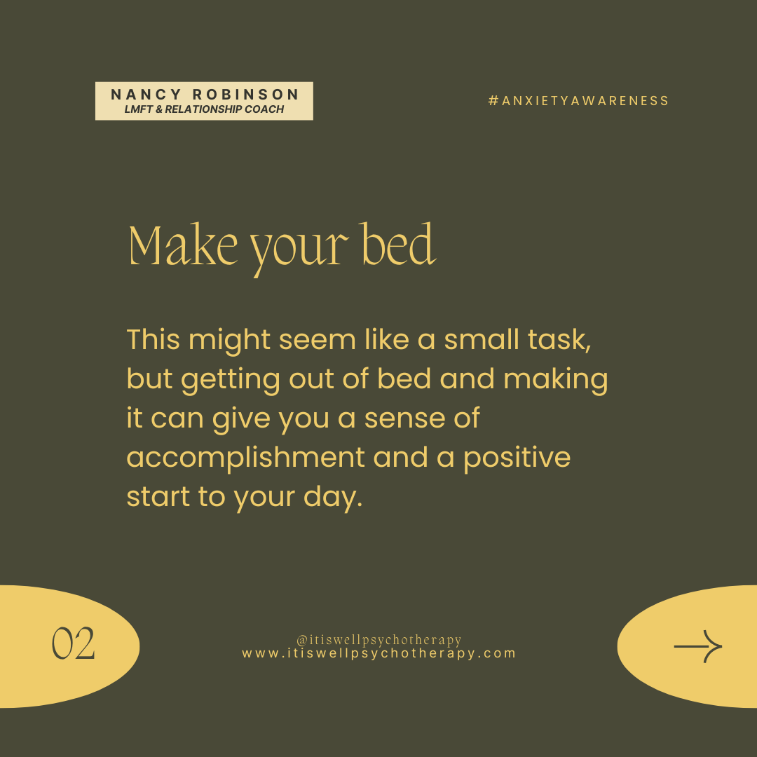 - Make your bed: This might seem like a small task, but getting out of bed and making it can give you a sense of accomplishment and a positive start to your day. It's a small win, but it can set the tone for the rest of your day. π.